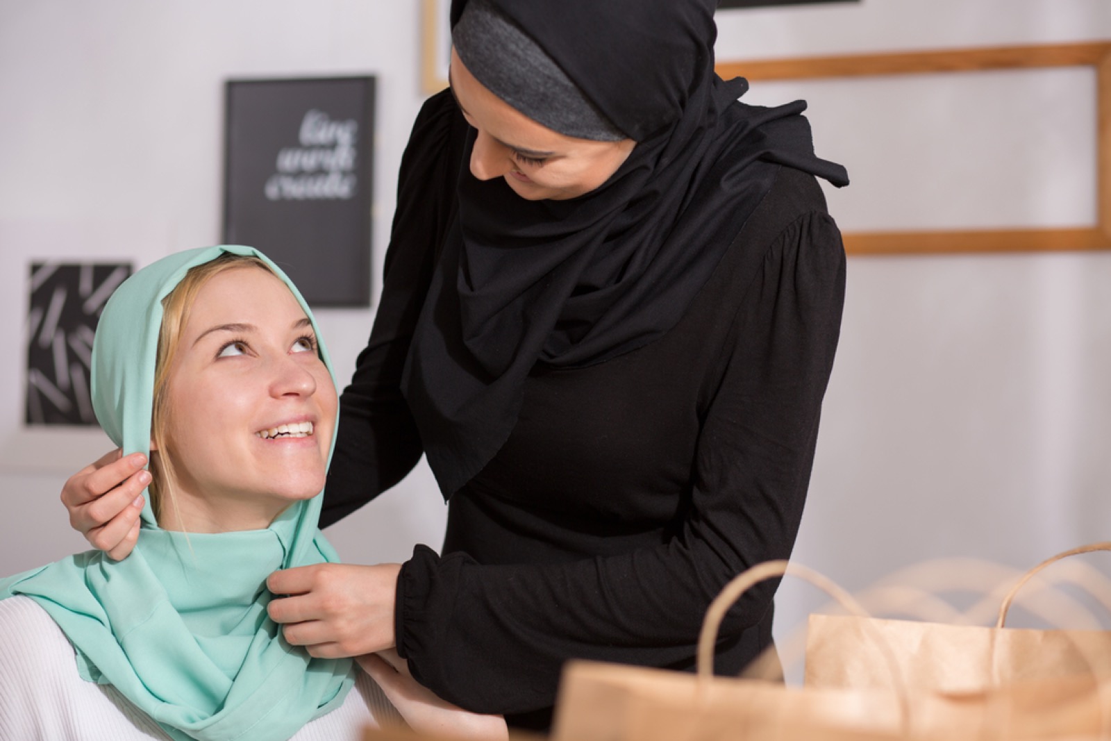 - Hijab couvrant les cheveux : opter pour un tissu suffisamment epais pour ne pas glisser mais suffisamment leger pour ne pas provoquer de surchauffe. Le jersey de coton offre un bon compromis